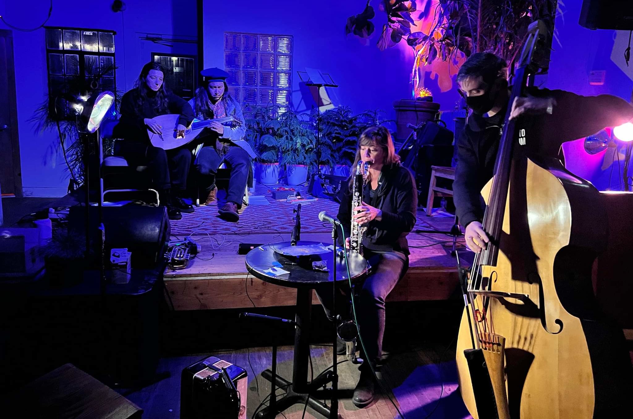 “I’m just here to learn, and then I go onto Berlin to celebrate the record release of my album Phase to Phase with Lucio Capece in Japan on the Japanese label FTARRI. Lucio and I composed these pieces together, spending every Tuesday for a year meeting on zoom to play our bass clarinet and talk about our lives. I recorded my part in Park City and he recorded his in Berlin, and it just came out on this fantastic label Ftarri, with gorgeous artwork by Cathy Fishman (watercolor whales),” Porter said.