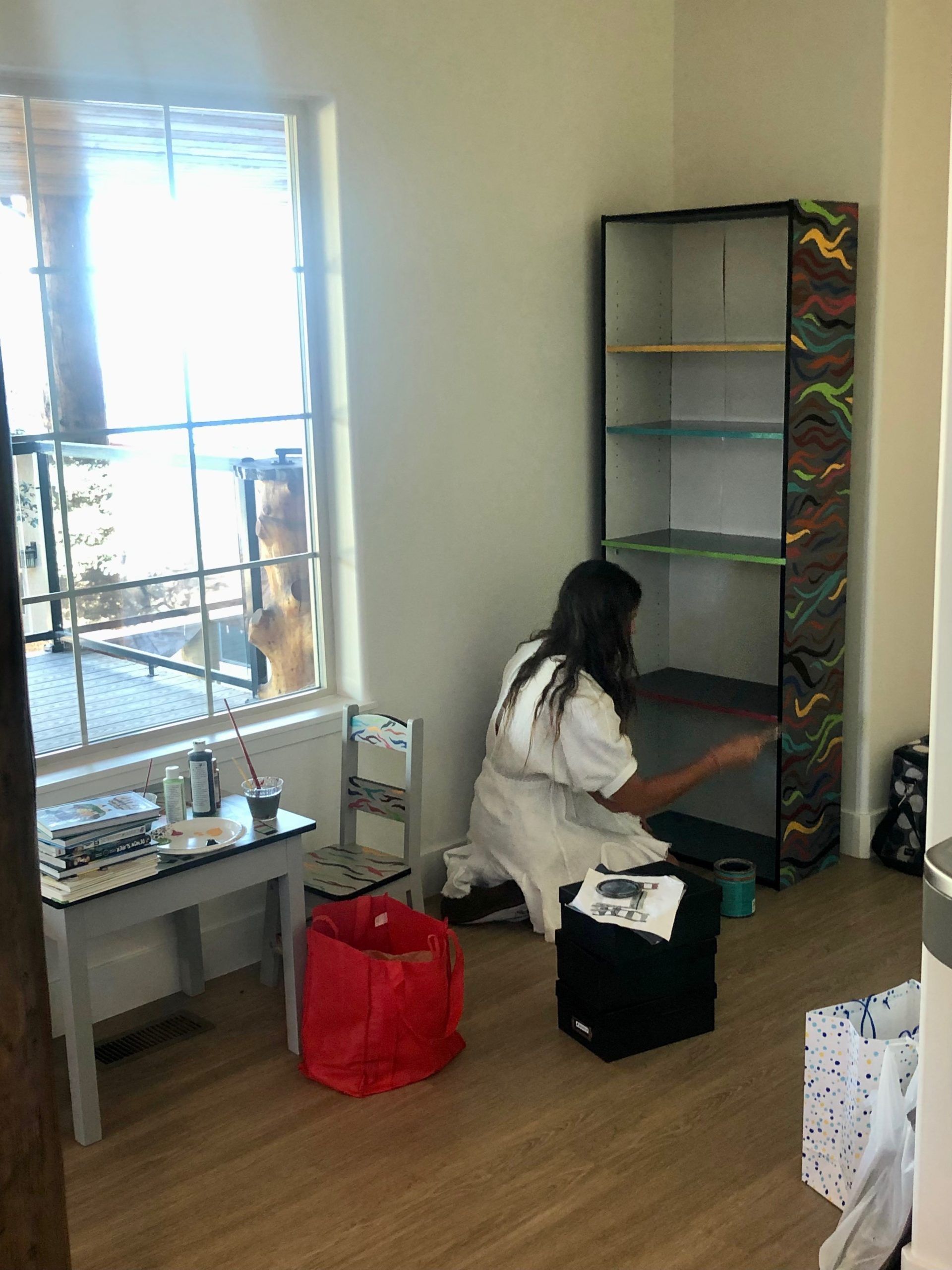 “I wanted kids to feel welcomed, comfortable and relaxed when they’re here,” said Macuga. So, Macuga made a bookshelf and a small-sized table. She then collected donated books, crayons, and coloring books, creating a cozy nook for children to utilize while they were at the center.
