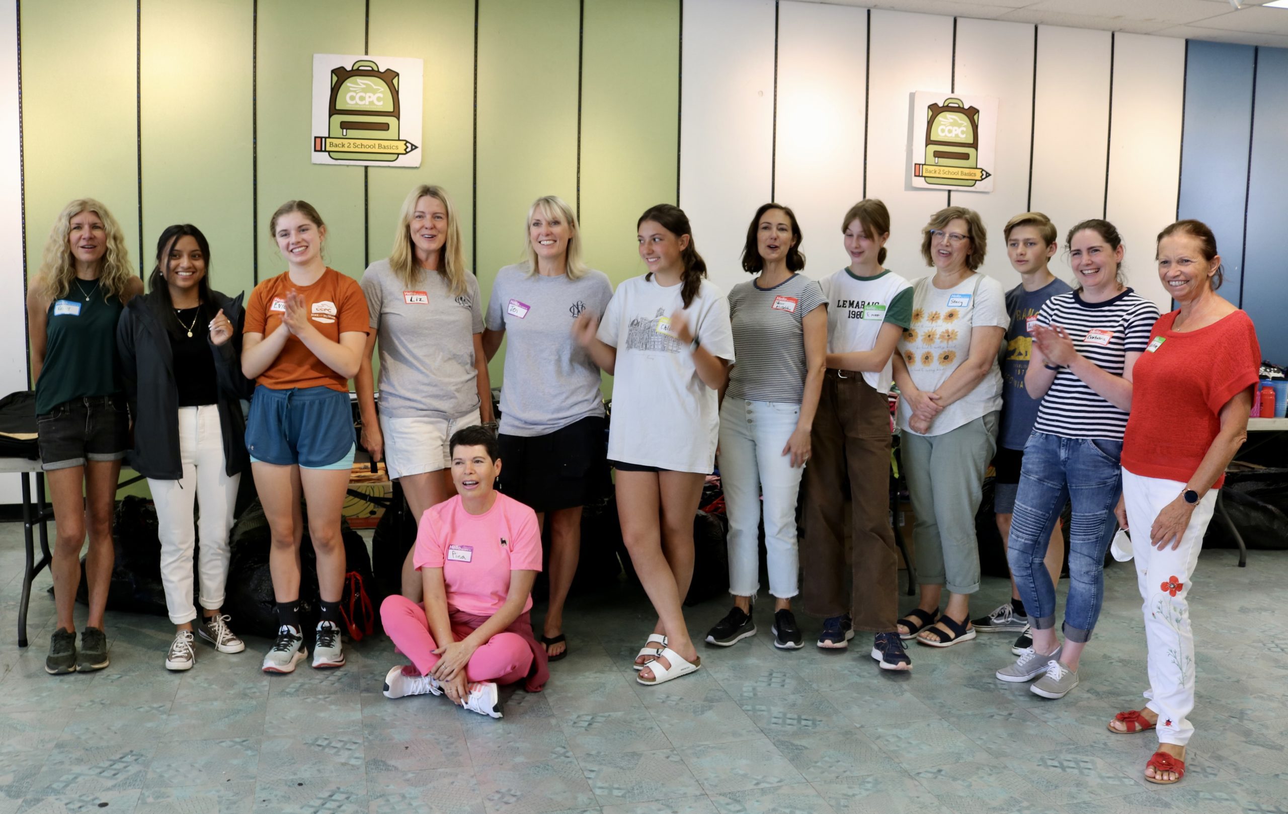Camila, Alexa, Romina, and mom Rafaela pose with the Back 2 School Basics volunteers after picking out brand new school supplies. Photo: TownLift // Meredith Kluever.