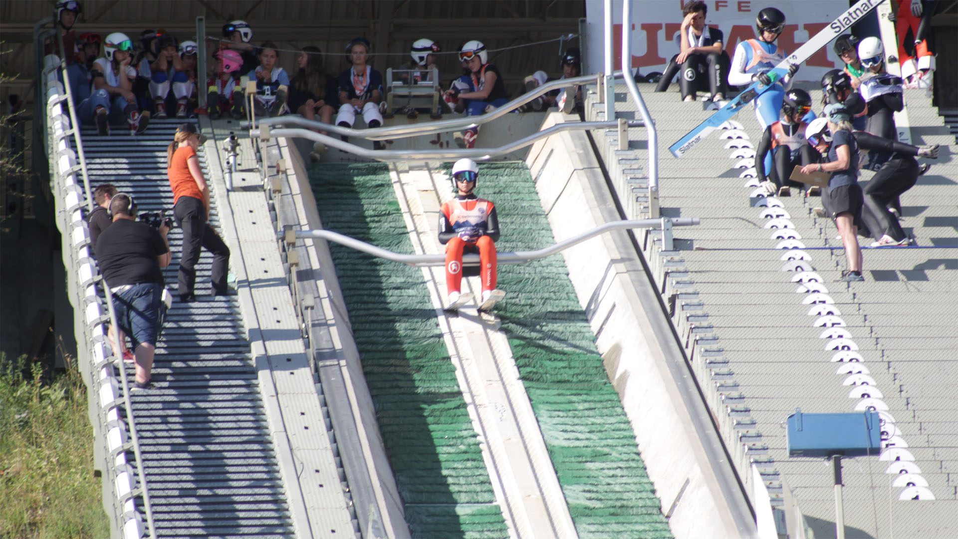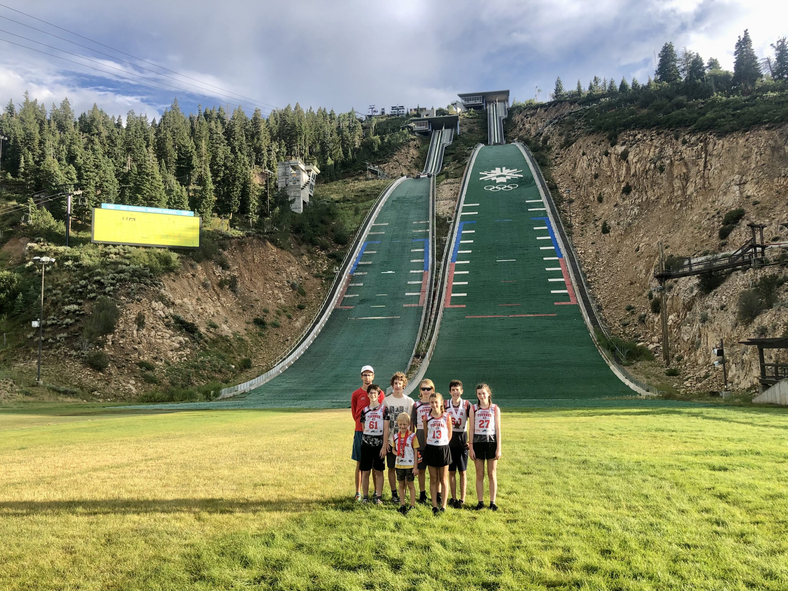 Demong’s dad, Billy Demong, Olympic gold and silver medalist, along with nine-time Olympics announcer Carl Roepke entertained the crowd on the mic at the Utah Olympic Park and live streamed during the five days of activities. The group consisted of travel teams and their families of six to twenty-six-year-olds from Alaska, New York, Illinois, Colorado, Wisconsin, Michigan, Minnesota, New Hampshire, Utah, and Canada.
