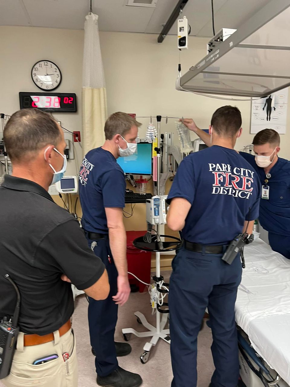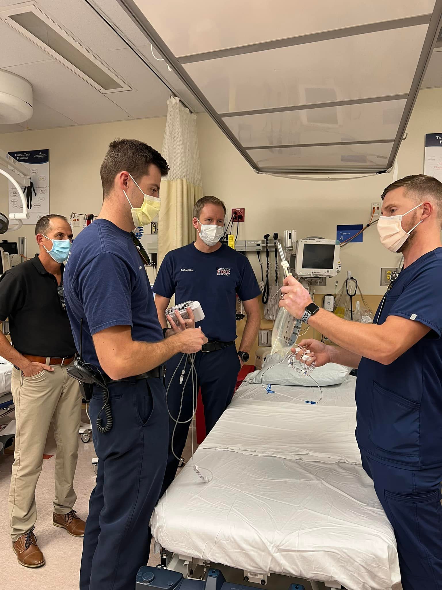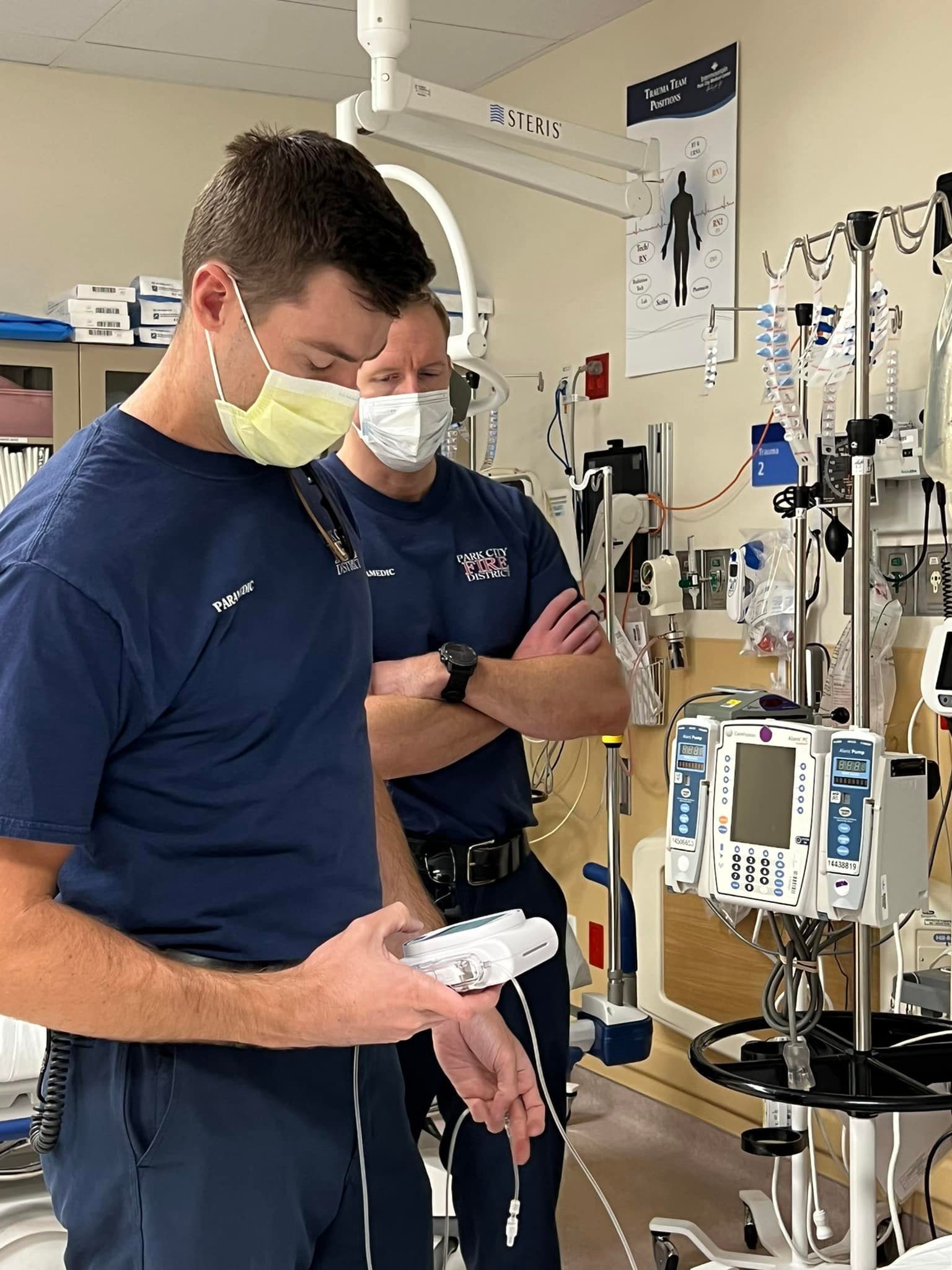Critical Care Medics Chris Hampton, Steve Carroll, and Battalion Chief Max Dosher received training at Park City Hospital on the infusion pump as well as how to transfer patient care when a pump is needed.