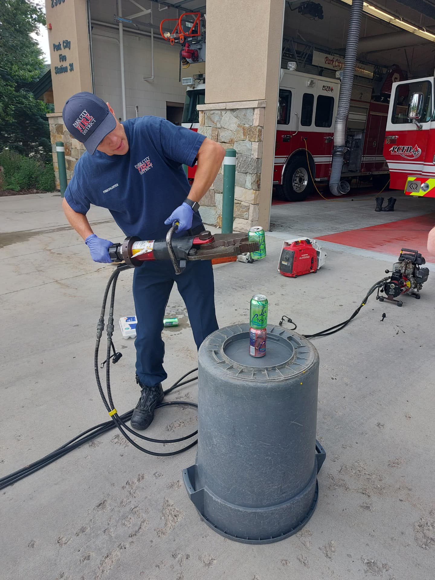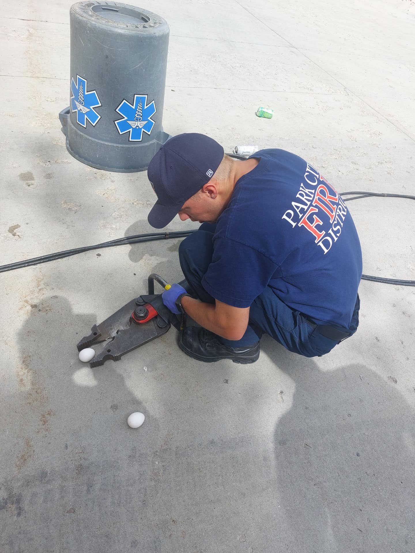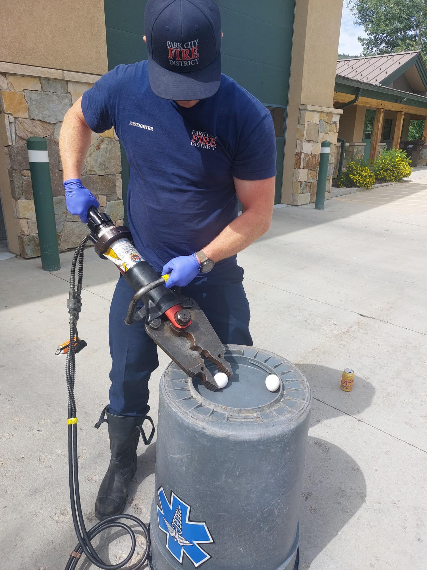 PARK CITY, Utah— Park City Fire District’s Station 31 C Platoon members Jon Jahp, Sam Croft, and Porter Royce completed training using extrication equipment as a part of their training for August. Each firefighter spends hours training to maintain each of their certifications as a part of a monthly training schedule created by the fire district. This could be at either the platoon level or the entire station crew.