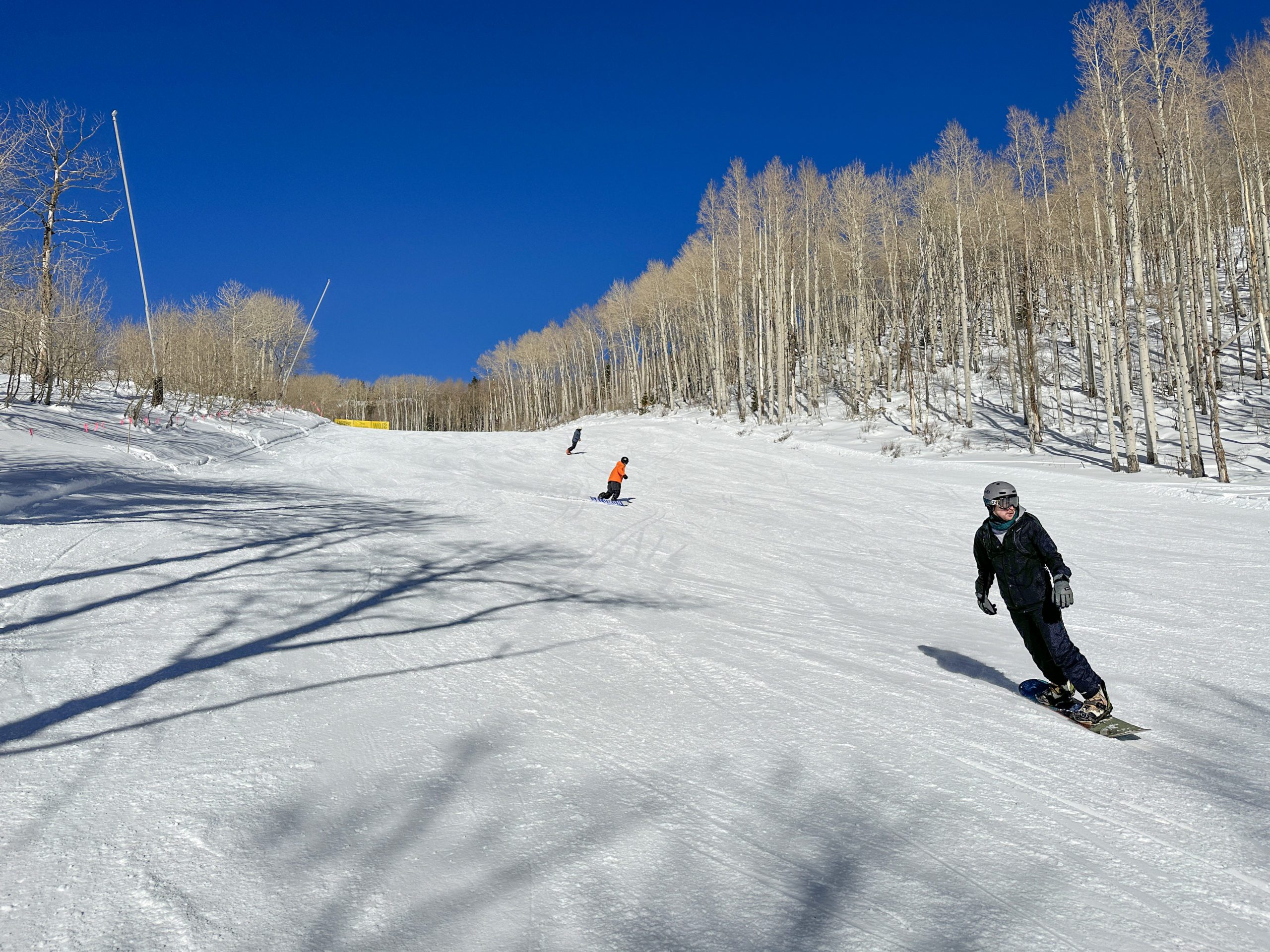 The Canyons side of PCMR was not crowded as parking, the lifts, and ski runs were free of bottlenecks and lines. Many local families were out across the mountain, with some taking their kids out of school. One group of teenage boys said that they called out sick from school as they had come down with the “ski flu.”
