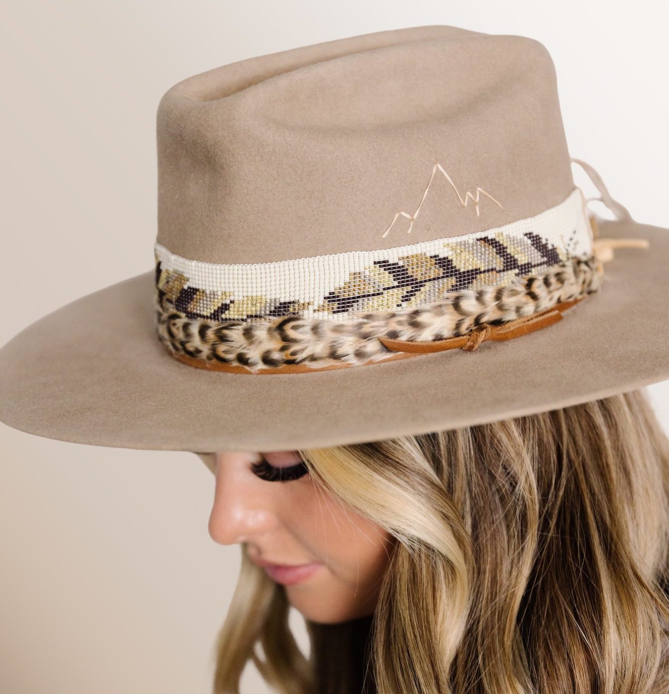 Like the hats themselves, the beaded and feather hat bands are hand-made by JW Bennett founder and hatter Sarah Kjorstad and a team of local women she taught.