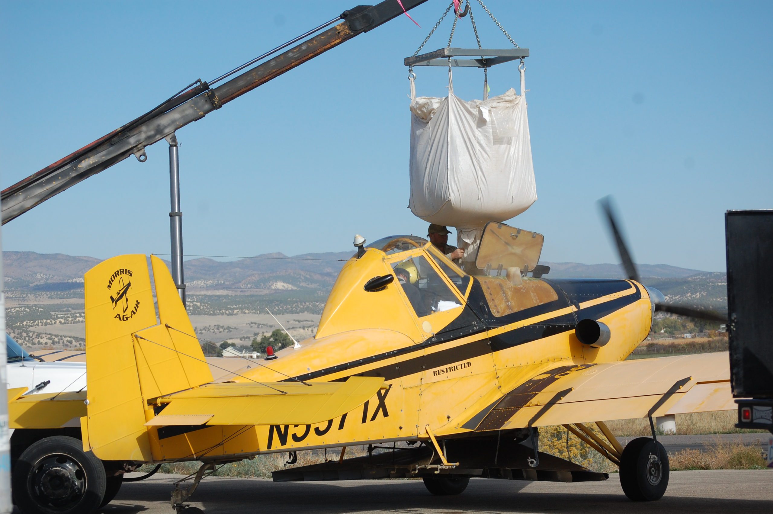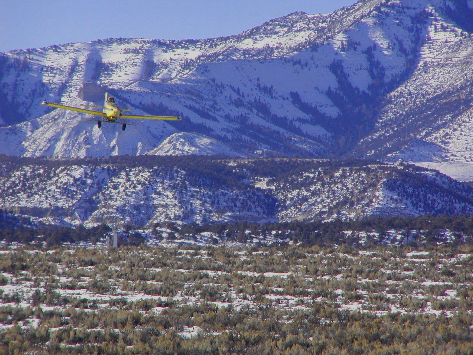 Aerial seeding being done via a helicopter after wildfire. Photo: Courtesy of Utah Division of Wildlife Resources