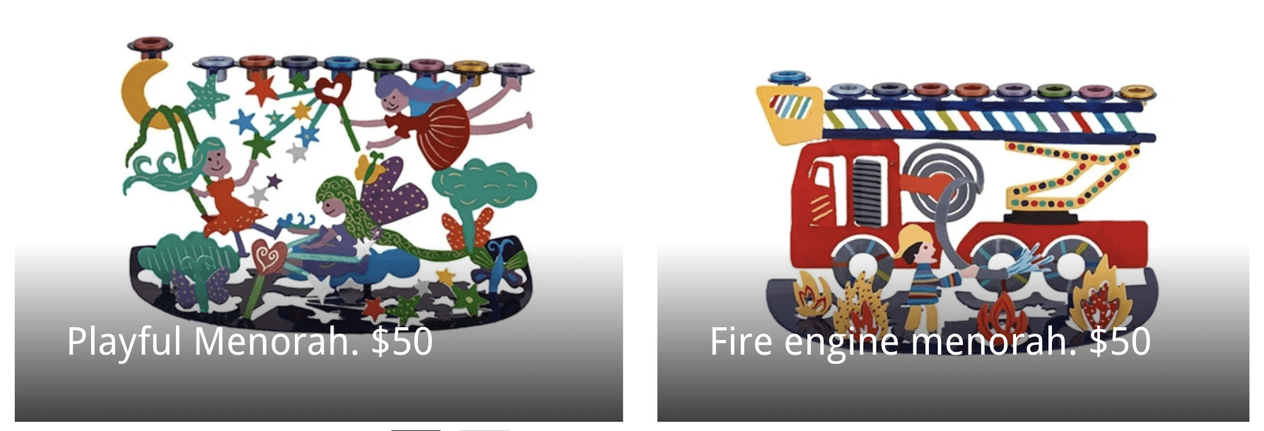 Shop online for all the offerings, including year-round holiday items. For in-person shopping, contact WHS Board Member Eve Stanger (womenofharshalom.com) or Risa Offit (risaoffit@gmail.com) to make an appointment to shop in person to see what’s in store for the season.