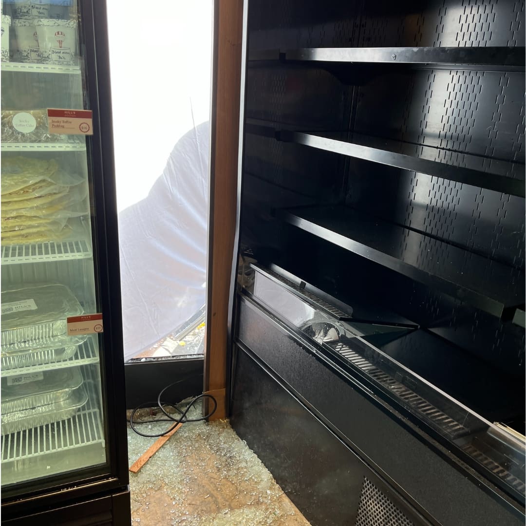 A car crashed into Hill's Kitchen on Wednesday Feb. 14 around 9 a.m. Firefighters are working to clean up the scene. Photo: TownLift // Laura M.