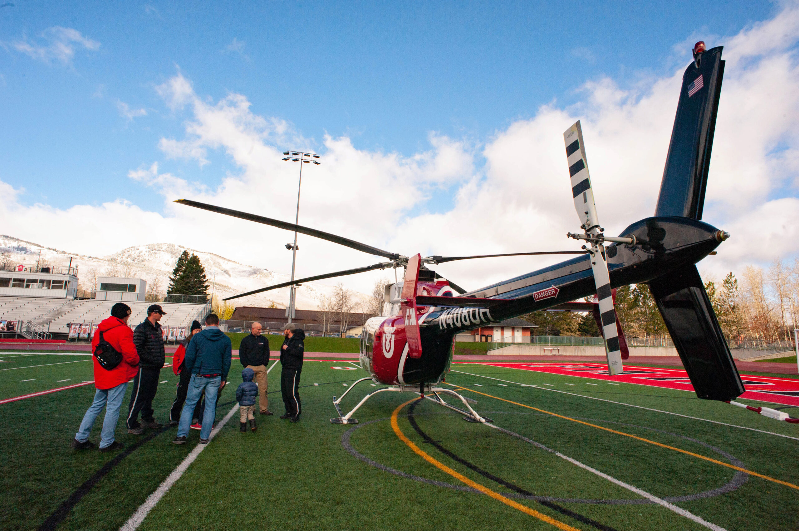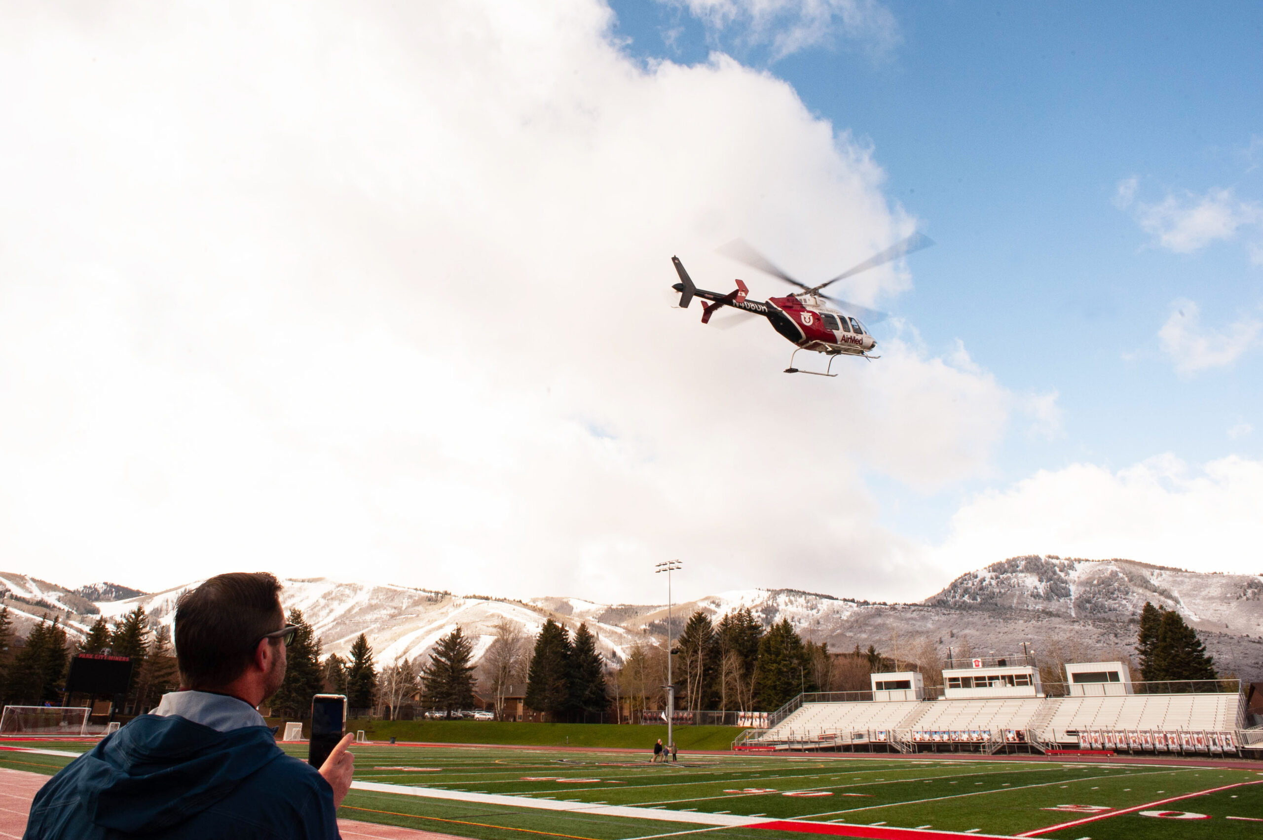 PARK CITY, Utah — On Friday May 3, the students at Park City High School received a special visit on Dozier Field from a University of Utah AirMed helicopter as a part of ‘Careers over Coffee,’ a program that showcases career opportunities and a panel discussion for interested students in specific fields.