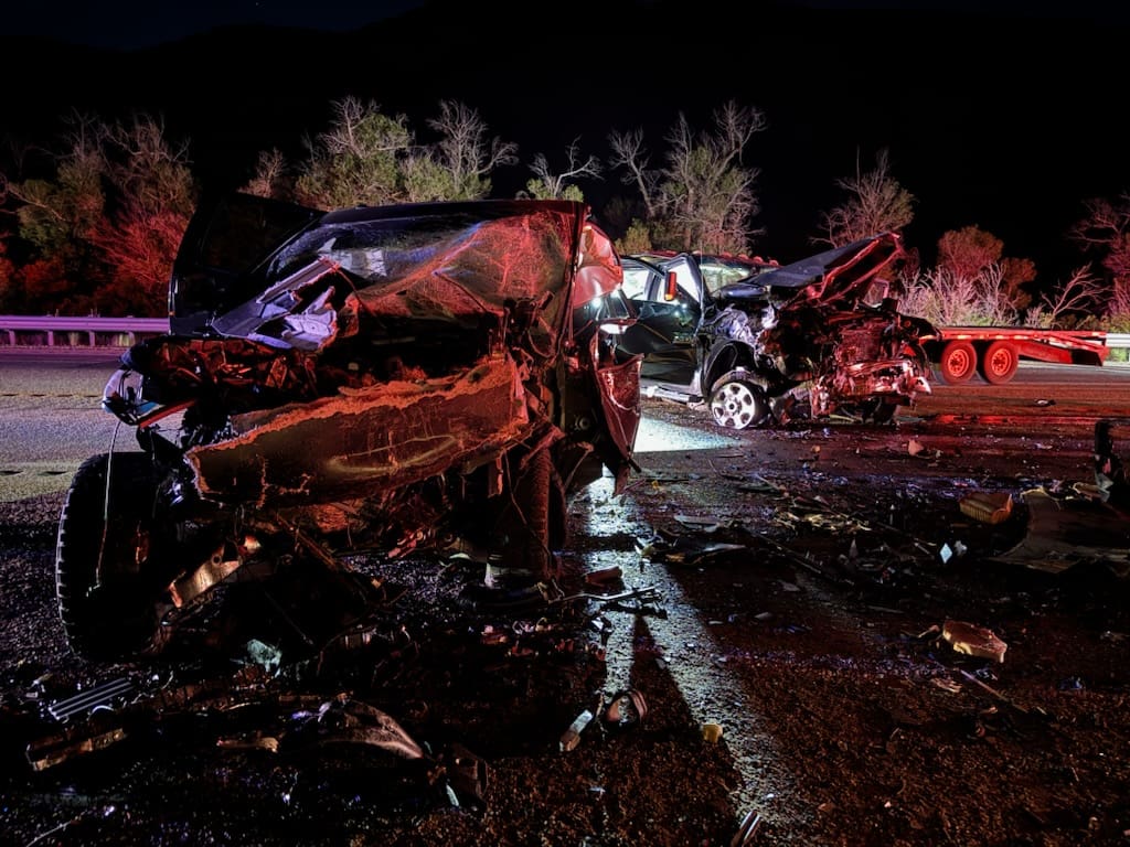 HEBER CITY, Utah — At approximately 10:35 p.m. on June 20, a fatal collision occurred on SR-40 near milepost 24. A black Ford F150 was traveling westbound when it attempted to pass another vehicle. After overtaking the vehicle, the F150 remained in the oncoming traffic lane for unknown reasons and collided head-on with a silver Dodge Ram towing a flatbed.