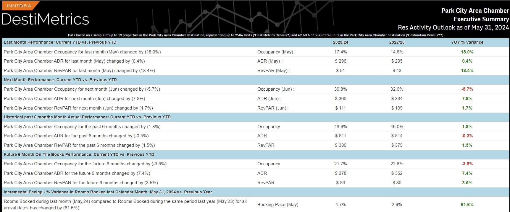 Park City paid occupancy (summer-to-date). Photo: Park City Chamber of Commerce & Visitors Bureau