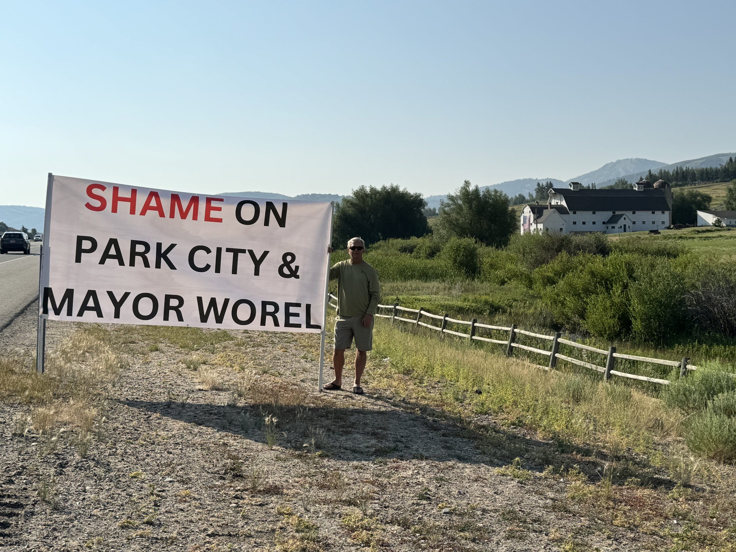 PARK CITY, Utah — Save People Save Wildlife (SPSW) demonstrated along SR-224 today, July 24, 2024, by the McPolin Barn, coinciding with Park City Mayor Nann Worel and the rest of the Utah delegation celebrating the 2034 Olympics announcement in Paris. Signs were held up stating, “Olympic visitors at risk, SR 224 needs wildlife crossings,” “Wildlife crossings needed,” and “Shame on Park City & Mayor Worel.”