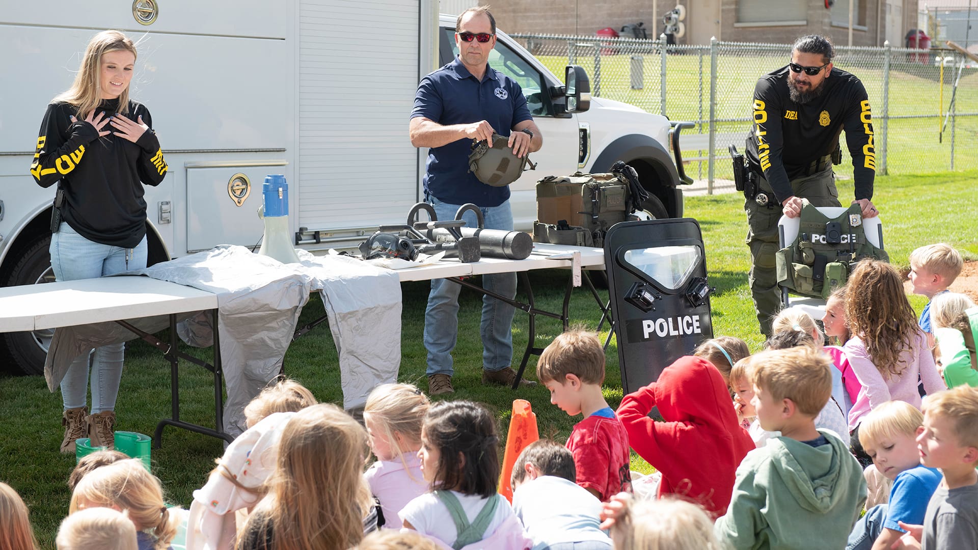 Principal Angie Dufner said the event, organized by School Resource Officer Art Boxall, brought together representatives from the DEA, National Guard, and local emergency services.