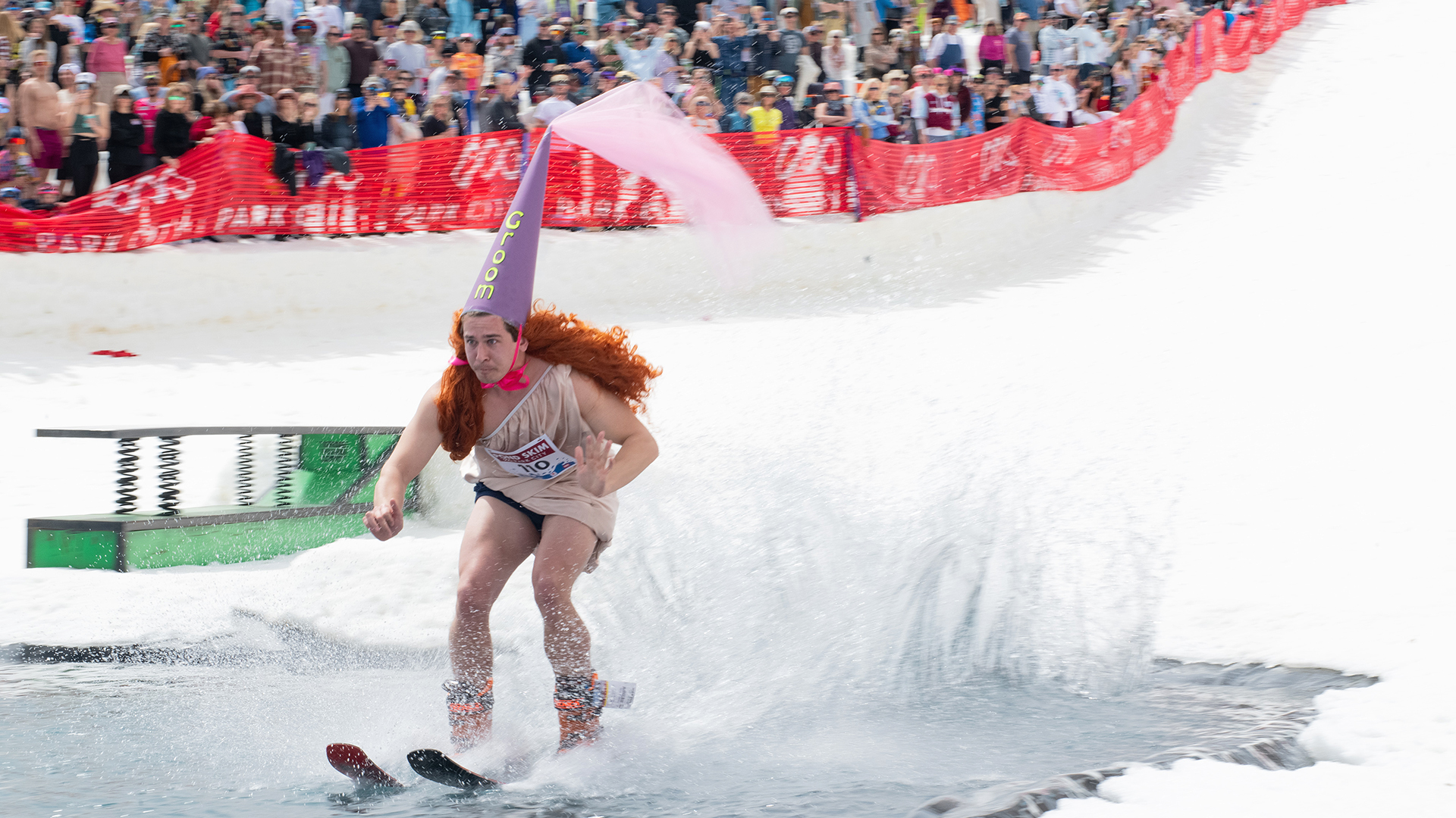 A pond skimmer in Park City Mountain Resort's annual rite-of-spring event on April 12, 2025. Photo: TownLift//Randi Sidman-Moore