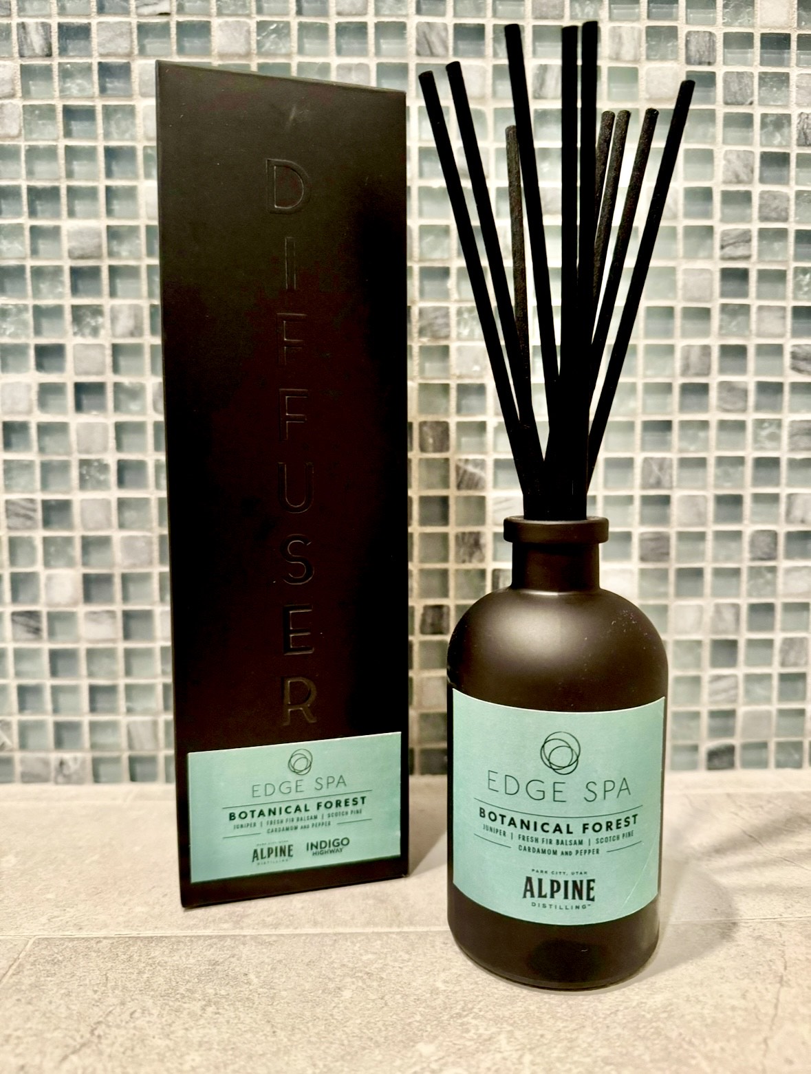“Each diffuser embodies the essence of distilling with rich, evocative notes of juniper, fresh fir balsam, Scotch pine, cardamom, and pepper—a sensory experience influenced by botanical gardens from around the world and Alpine’s Elevated Gin.”