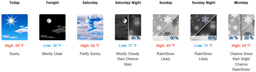 2 - 6” of snow is expected for the Wasatch Mountains on Sunday through Monday morning