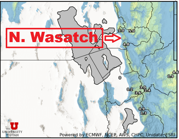 - N. Wasatch (Powder/Snowbasin): 3 – 7″