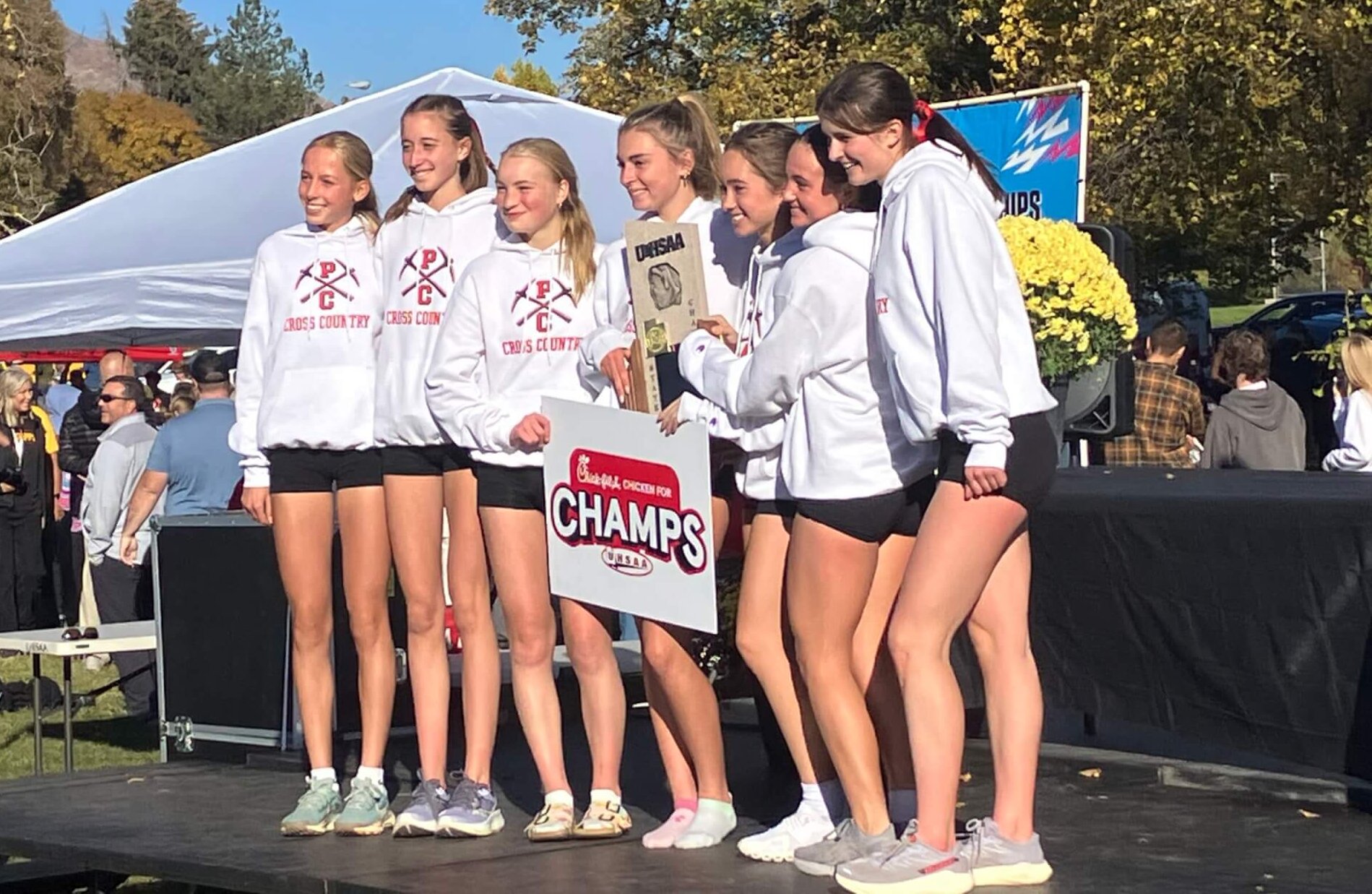 Three-time Winter Olympic cross-country ski racer Liz Stephen coaches for the Park City Nordic Ski Team, which includes now-state champion runners Rhys Weidenhamer and Phoebe Zaniello, as well as Cuttitta’s own daughter, Savannah, a nordic combined athlete who is not yet in high school. Stephen drove the team van from Park City packed with student-athletes to cheer on the runners, while the high school drove a bus with 30 more student spectators.