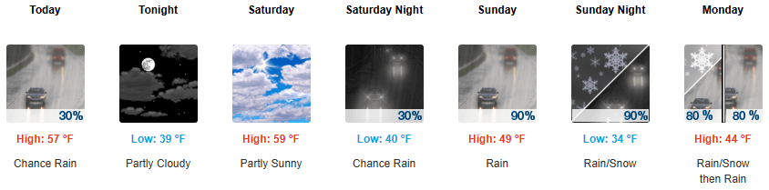 3-7” of snow is expected for the Wasatch Mountains on Sunday through Monday