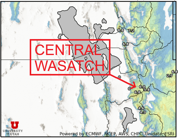 - N. Wasatch (Powder/Snowbasin): 3 – 7″