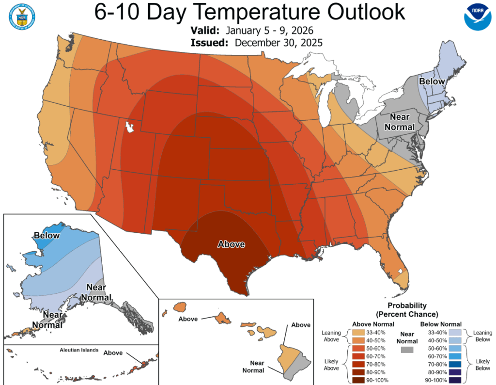 Things look to be quite uncertain after that, but generally the pattern remains active and the larger low-pressure center should move inland later in the week bringing additional precipitation. Long-range temperature forecasts continue with the warm trend into mid-January.