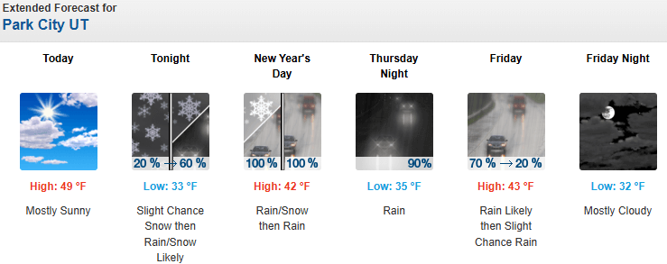 Highs near 50 degrees for Park City NYE, warm storm moving in overnight to kick off 2026