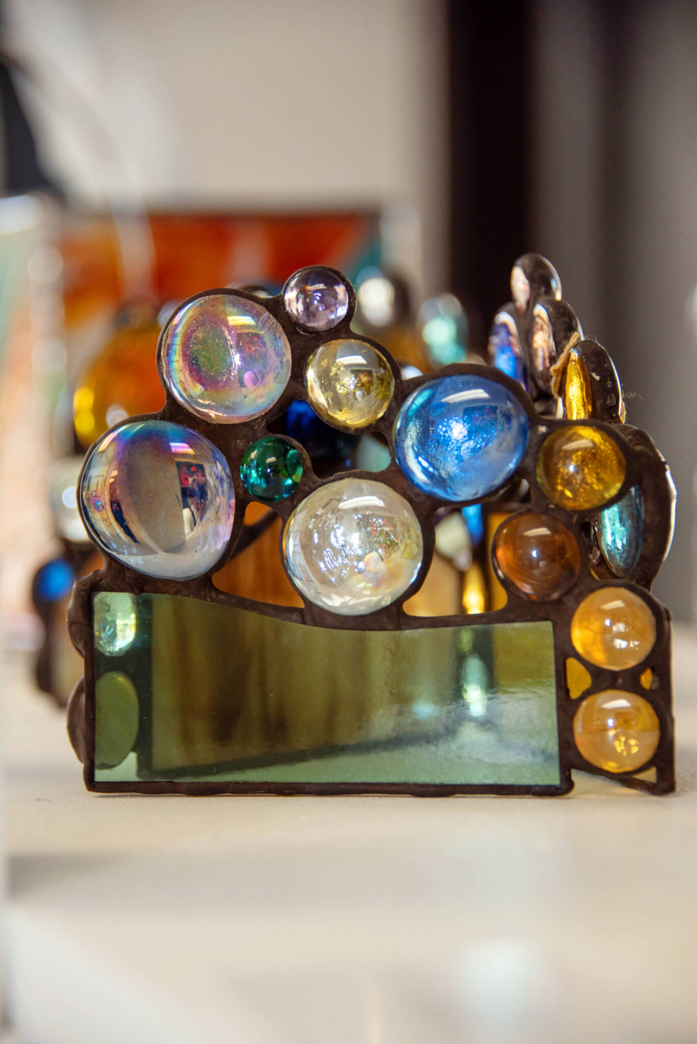As Dawn was working on more abstract pieces and mixed media—adding shells, stones, and different types of materials to the glass to see what she could come up with—she met Alexandra Jicol, who convinced her to check out Create PC. Since December 2024, Dawn’s work has been featured at Create PC in Park City.