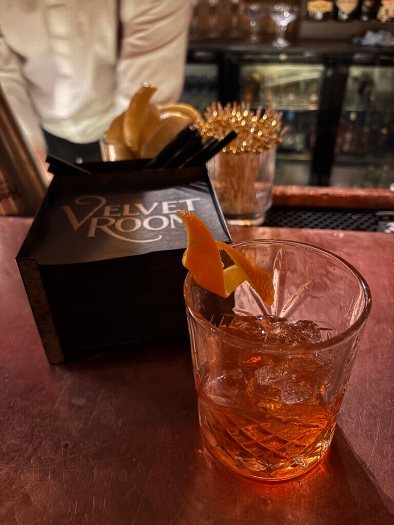 The Velvet Room also partners with luxury brands including Louis Roederer Cristal Champagne and Diageo spirits, reinforcing the upscale focus. A curated cocktail menu and light bites are offered, with service intentionally paced.