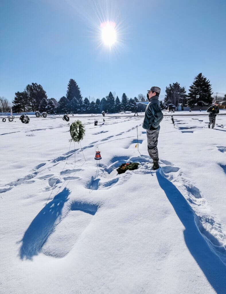 Following her military retirement, Denise remained involved in serving, serving as the Senior Aerospace Science Instructor (SASI) for the Air Force Junior ROTC program at Wasatch High School and as a substitute teacher for the district. For five years, she has led young cadets in the Junior ROTC program. In 2022, she was contacted by the local chapter president of Wreaths Across America to invite Wasatch County cadets to the annual ceremony honoring buried veterans at the Heber City cemetery. And, in 2023, she took on the role when the chapter president retired.