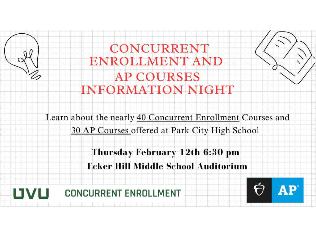 PARK CITY, Utah — Park City School District will host an Information Night on concurrent enrollment and Advanced Placement courses on Feb. 12, 2026, at 6:30 p.m. at the Ecker Hill Middle School auditorium.