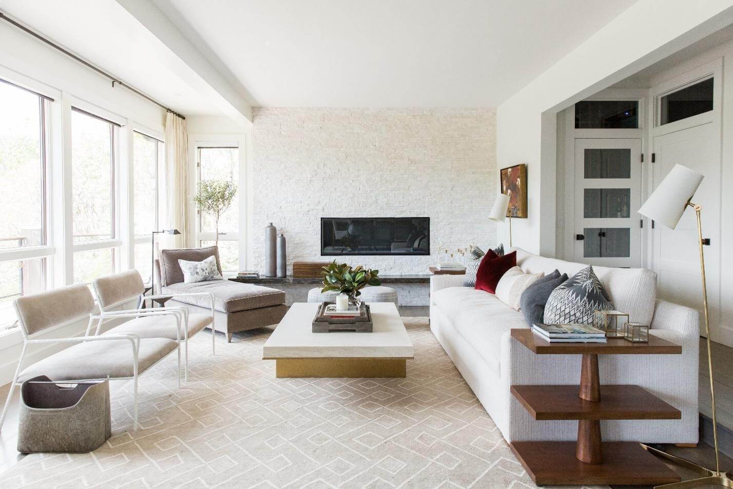Area rugs ground spaces. Lighting is layered to include ambient, task, and accent sources, creating warmth during long winter evenings. Accessories are purposeful: ceramics, books, art, and sculptural objects that feel personal and connected to place. Nothing feels overly styled, yet everything feels intentional.
