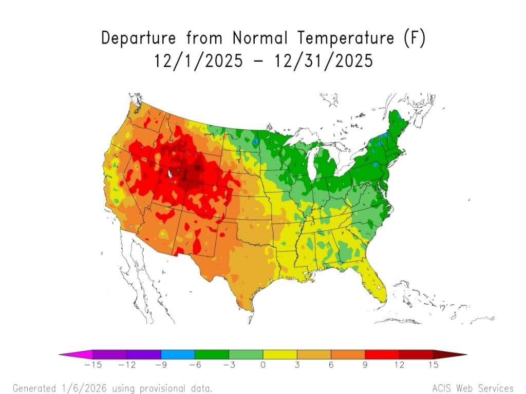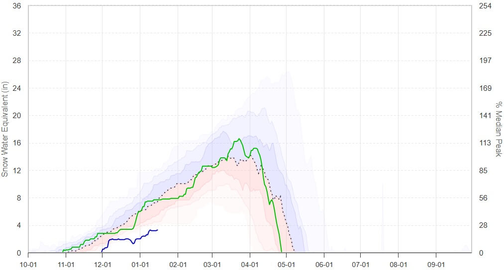 Drought.gov attributed the poor start in part to record warmth in December. Warmth can push precipitation toward rain, melt low-elevation snow, and reduce the amount of water stored in snowpack.