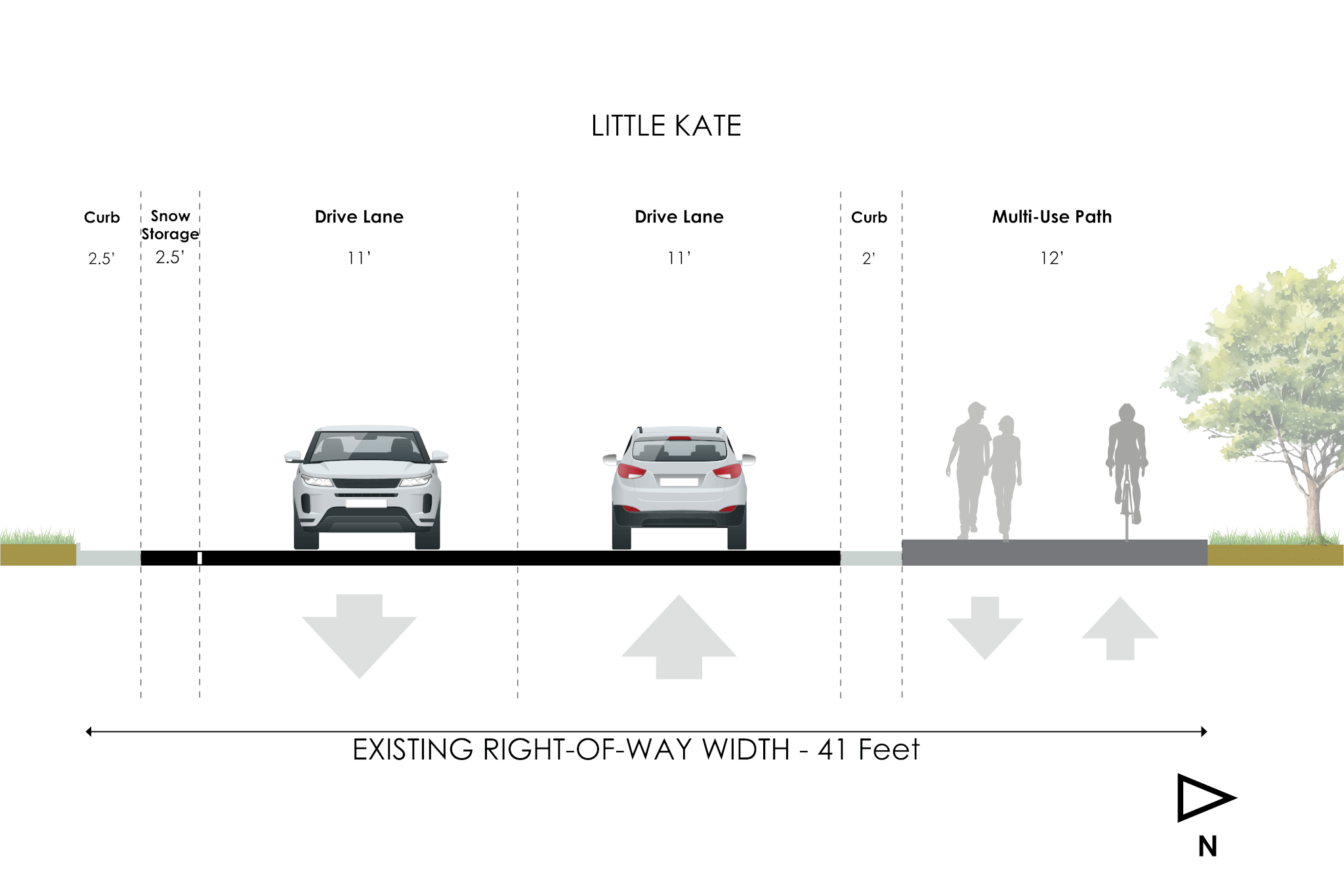 - A planned 12-foot multi-use path on the north side of Little Kate Road