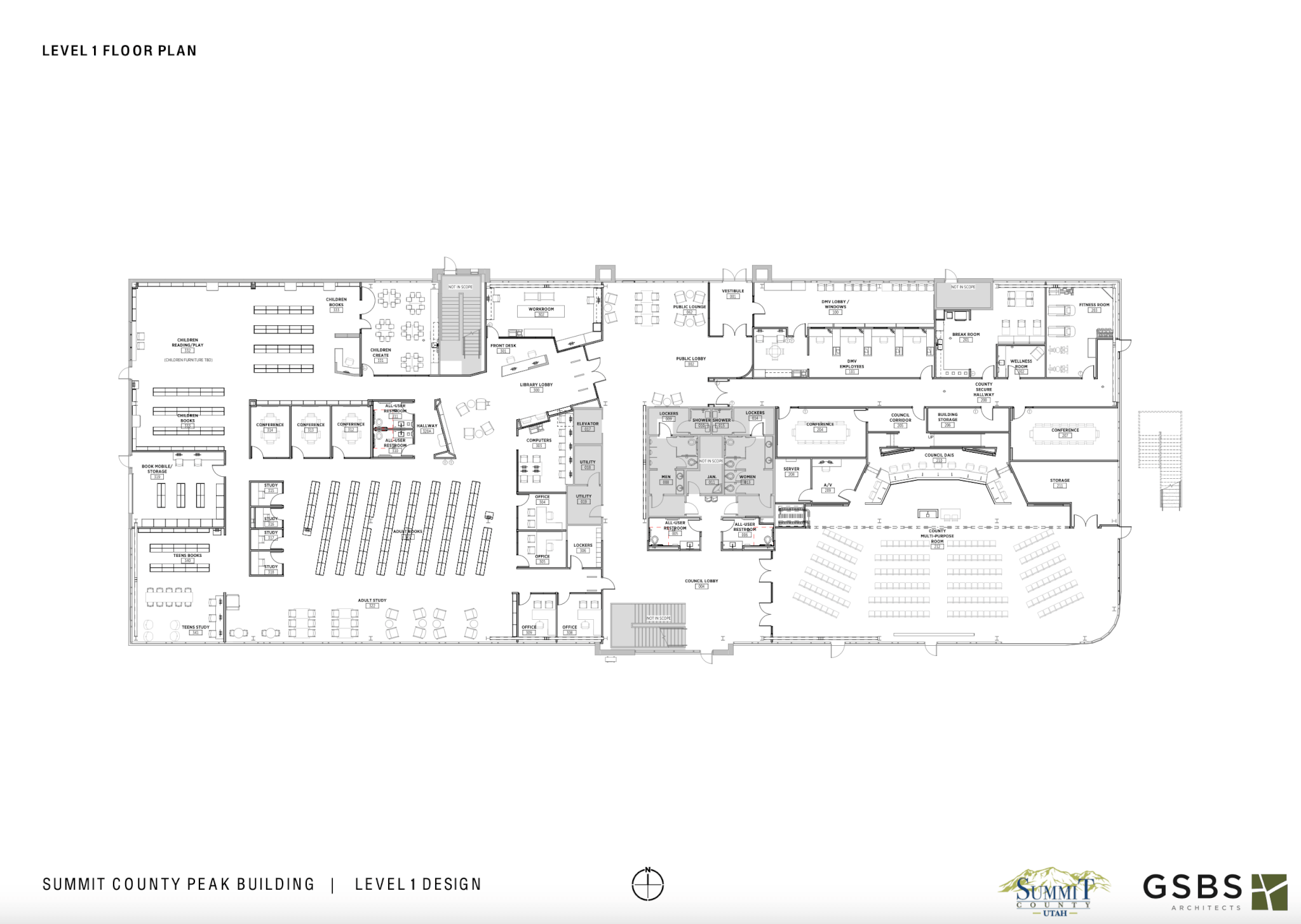 The ground floor is being rebuilt to house a Summit County Library branch, a Utah Division of Motor Vehicles branch, a county council meeting space with a fixed dais, and conference rooms. The county previously approved a $4.2 million contract with Zwick Construction for the public-facing ground-floor build-out.